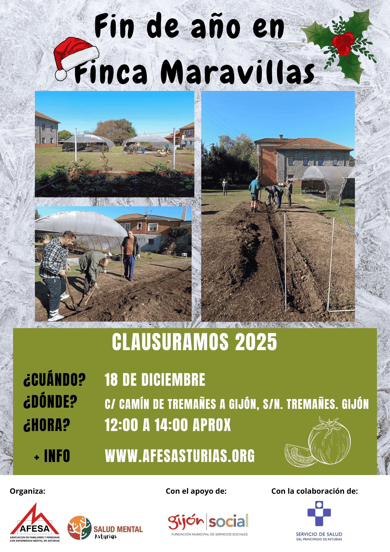 La primera clausura se celebrará en Noreña, en la Finca Miraflores, el 16 de diciembre a las 10.30 horas. A continuación, los actos continuarán el 18 de diciembre en Arriondas a las 11.00 horas y en la Finca Maravillas de Tremañes a las 12.00 horas.